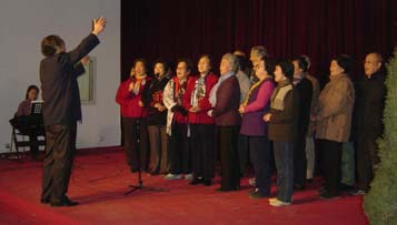 院長、李新副院長、張云龍副院長、調研員孫鳳剛同志應邀到會,離退休的老前輩、部分部門領導、手工藝系李秀梅書記、段建華副主任帶領本系教師、學生參加了聯歡會,并為老前輩們奉獻了精心準備的文藝節目。聯歡會在老年合唱團的合唱聲中開始。