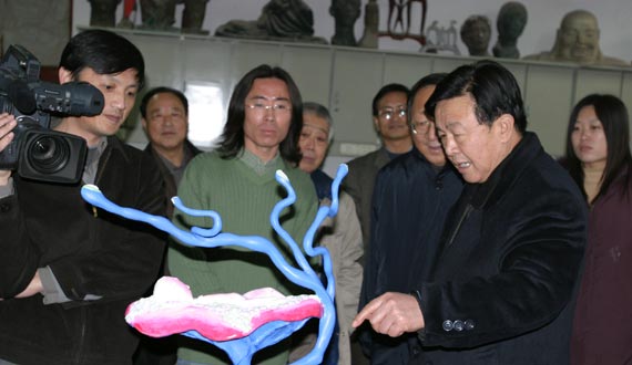 喬延春副主席一行還參觀了學院孫長林藝術館、中國民藝博物館和裝潢系的聲像室、數(shù)字藝術系的攝影棚、手工藝系的金工工作室以及美術系的雕塑工作室等。