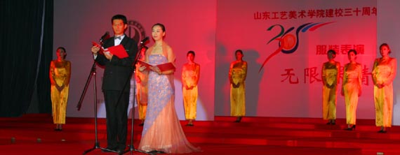 10月26日,山東工藝美院30周年校慶系列活動之一,以《無限深情》為主題的大型服裝表演在山東國際會展中心會堂拉開帷幕。王軍民副省長觀看了這次演出。王軍民副省長對我院堅持“辦出特色、注重建設”的原則,不搞慶典儀式,通過舉辦系列學術活動,高揚人文旗幟,倡導創新精神,與海內外校友一起切磋技藝、研討理論的做法給予了充分肯定,并向我院30周年校慶表示了祝賀和祝福。