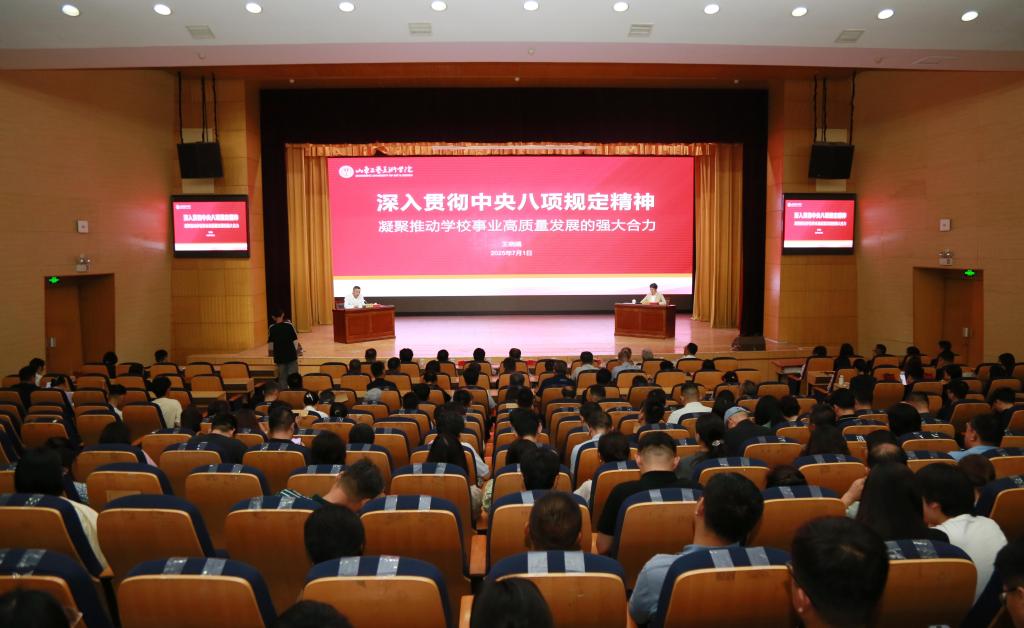 在中國共產黨成立104周年之際,7月1日上午,黨委書記王曉娟在長清校區學術報告廳為全體教職工黨員講授深入貫徹中央八項規定精神學習教育專題黨課。