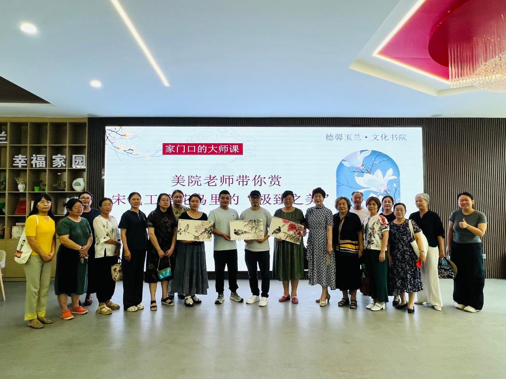 在東營市,造型藝術學院的許寶俊老師以宋代工筆畫為切入點,從《雙喜圖》的精妙構圖到《寫生珍禽圖》的生動氣韻,將傳統藝術的精髓娓娓道來。當解析到《雙喜圖》中喜鵲的神態時,他特別強調:“工筆畫貴在傳神,看似工整的線條里藏著畫家的呼吸與心跳。”在示范環節,許老師邊畫邊講解:“作畫如做人,需胸有丘壑方能下筆有神。起筆要果斷利落,收筆要細致入微,正所謂‘大膽落墨,小心收拾’。”不少學員也帶來了自己的習作請教,許老師一一指點,從構圖到設色,從筆墨到意境,耐心解答每個疑問。在這方寸講臺之間,傳統文化正以最生動的方式走進尋常百姓家,潤物無聲地滋養著每個人的精神世界。