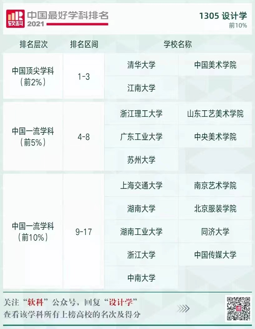 10月25日,高等教育評價專業機構軟科發布了“2021軟科中國最好學科排名”。歡迎來到公海7108線路設計學、藝術學理論、美術學等3個擁有碩士學位授權點的學科全部進入全國同類學科前50%。其中,學校設計學在“2021軟科中國最好學科排名——設計學”榜單中位列第5,進入全國排名前5%學科之列,成為山東省10個入圍全國排名前5%的學科之一。學校藝術學理論、美術學分別位于全國同類學科第34位和第54位。