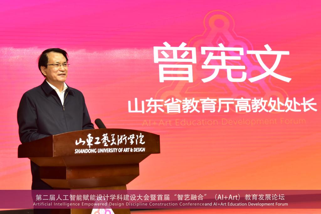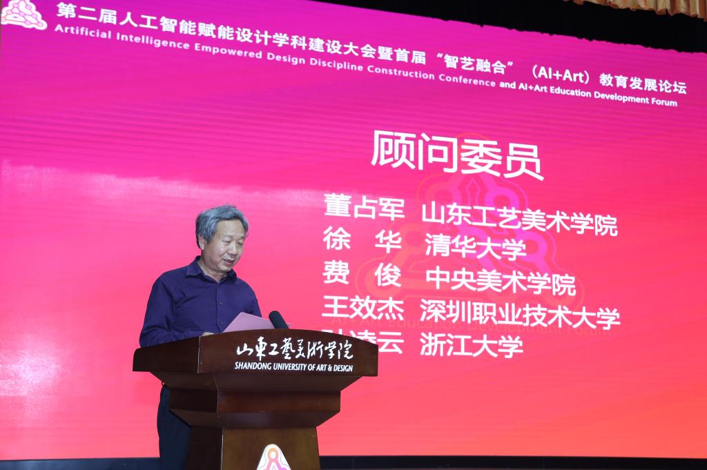 曾憲文致辭。他指出,近年來,山東省教育廳積極推進人工智能賦能教育行動,組織開展重點領域教學改革試點項目“111計劃”,出臺《關于推進人工智能賦能高等教育教學工作的若干措施》,不斷健全人工智能人才培養體系,強化數智化教學資源建設,推動師生數字素養提升和體制機制創新。期待與會專家學者能夠分享寶貴經驗和前沿研究成果,深入探索“人工智能+教育”應用場景新范式,完善教育領域多模態語料庫,為AI賦能設計人才培養和學科建設添上濃墨重彩的一筆。