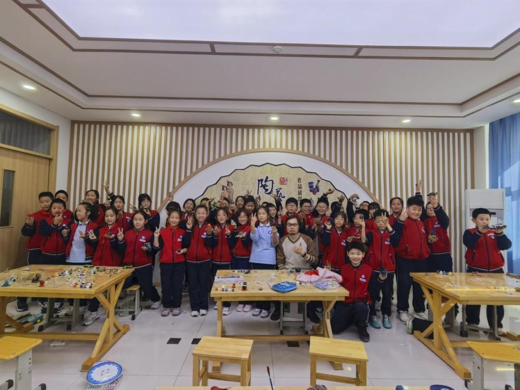 濱州山東航空學院附屬小學的教室里,陶泥的溫潤氣息縈繞鼻尖。造型藝術學院曹淑海老師捧著一件憨態可掬的兔子彩塑,從“兔獻瑞福”的吉祥寓意講到民間彩塑的技法傳承。孩子們小臉上寫滿專注,稚嫩的小手在陶泥上揉捏按壓:圓滾滾的熊貓、尖耳朵的兔子、戴帽子的小老虎,一個個雛形在掌心慢慢成形。曹老師穿行其間,彎腰幫孩子調整輪廓,俯身教大家拿捏神態。彩繪環節更是熱鬧,孩子們揮舞畫筆,給小動物裝上彩虹翅膀、畫上星空紋路,讓童真在陶泥上盡情綻放。