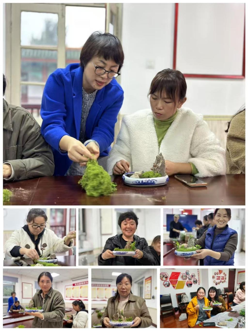 “您說得對,古人造園講究‘以小見大’,這一方天地也能展現萬里河山。”在濟寧社區的課堂上,另一番雅致的景致正在鋪展。建筑與景觀設計學院的呂桂菊老師帶領研究生團隊,以網師園為范本,通過“園林尋寶”互動環節,向居民生動闡釋古人的造園智慧。在老師的指導下,居民們巧用山石、沙土與綠植,將古典詩詞的意境融入親手打造的微型園林中。一抔土、幾塊石,經過精心布局,一幅詩意盎然的山水畫卷已映入眼簾。這方寸之間的造景,既是居民對古典美學的鮮活詮釋,更是美育融入生活的生動注腳。