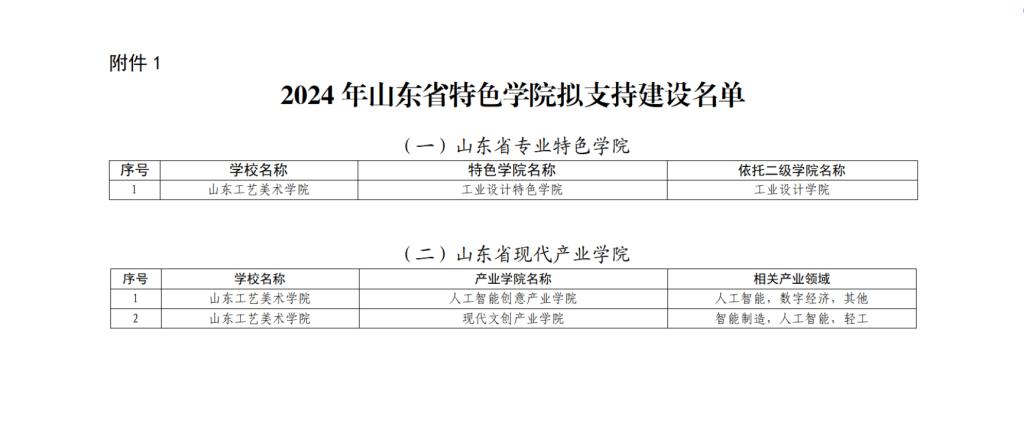 關于2024年山東省專業特色學院、現代產業學院、“111計劃”等擬支持建設(立項)名單的公示