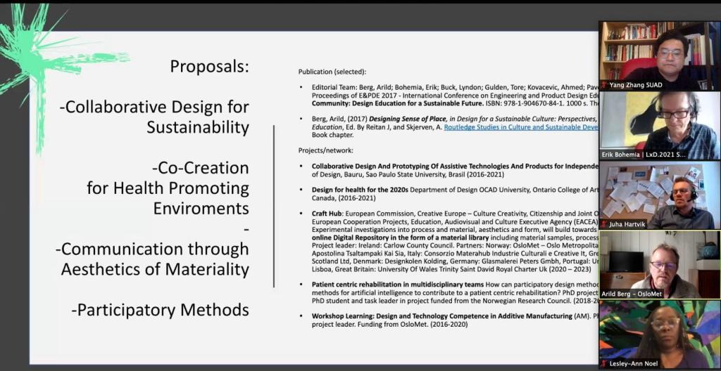 本次研討會共有來自麻省理工大學、愛丁堡大學等眾多知名院校的52名專家、學者參加。我校特聘教授、設計理論研究協會主席Erik Bohemia,兼職教授張旸共同組織并參加研討會。專家學者們討論了設計教育前沿的研究主題并闡述了他們之間的關聯性,對如何推進設計教育進行了深入交流,基本確定了2021年國際設計教育學者大會學術論文征集和工作坊的主題。