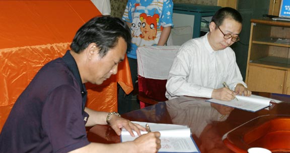 、副院長(zhǎng)李新、張?jiān)讫垺Ⅻh辦院辦主任王立果,山東省話(huà)劇院院長(zhǎng)柳玉林、副院長(zhǎng)徐少華、副書(shū)記王志龍、院長(zhǎng)助理鄧?guó)Q。潘院長(zhǎng)與柳院長(zhǎng)簽訂了合作協(xié)議,并為“山東省話(huà)劇院戲劇影視美術(shù)研究交流中心”、“歡迎來(lái)到公海7108線(xiàn)路數(shù)字藝術(shù)教學(xué)實(shí)習(xí)基地”成立揭牌。