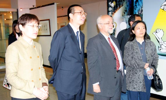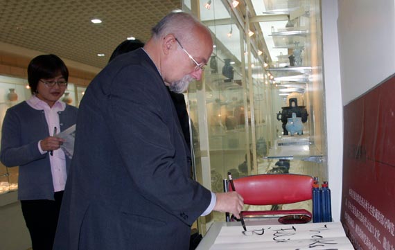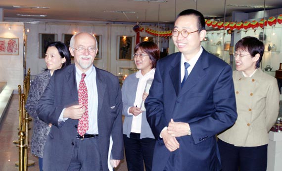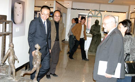 隨后,貝格先生一行參觀了“30周年校慶教師·校友·學生作品展”,“新校區規劃設計方案展覽”,以及孫長林藝術館和博物館陳列的藝術品。