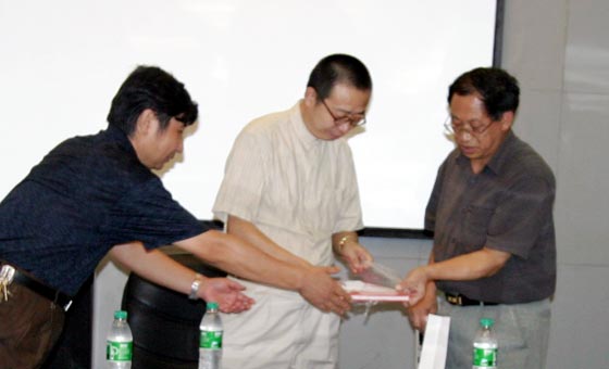 2003年8月10日下午,韓國大邱市國際交流聯(lián)合會(huì)、藝術(shù)總會(huì)局長(zhǎng)何傳乾先生在中國東方國際文化交流促進(jìn)會(huì)曾毅主席陪同下抵達(dá)我院。經(jīng)院辦安排,何傳乾先生一行在教務(wù)處會(huì)議室與我院