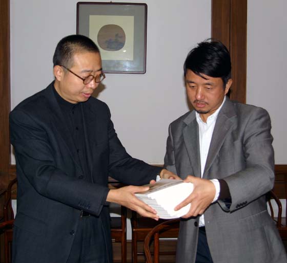 潘院長向徐院長贈送我院新修訂的教學計劃和教學大綱