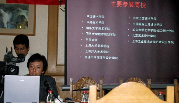 中國美術(shù)學院副院長宋建明在新聞發(fā)布會上為大家介紹入選作品情況