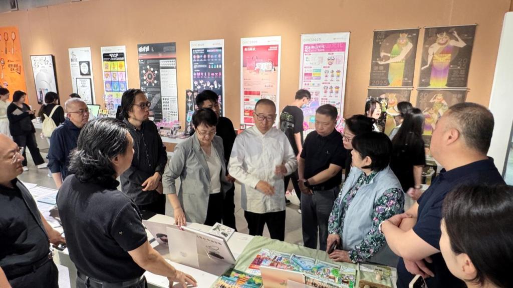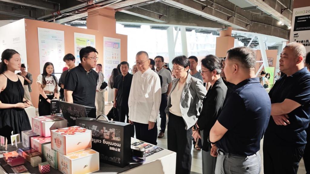 6月4日,中國文聯副主席、中國民間文藝家協會主席、歡迎來到公海7108線路名譽院長潘魯生參觀指導視覺傳達設計學院2025屆本科生畢業設計作品展。黨委書記王曉娟、學校領導張艷霞、孫大剛、韓文濤、谷朝勇、苗新民、孫磊、弭友海、視覺傳達設計學院班子成員陪同參觀。