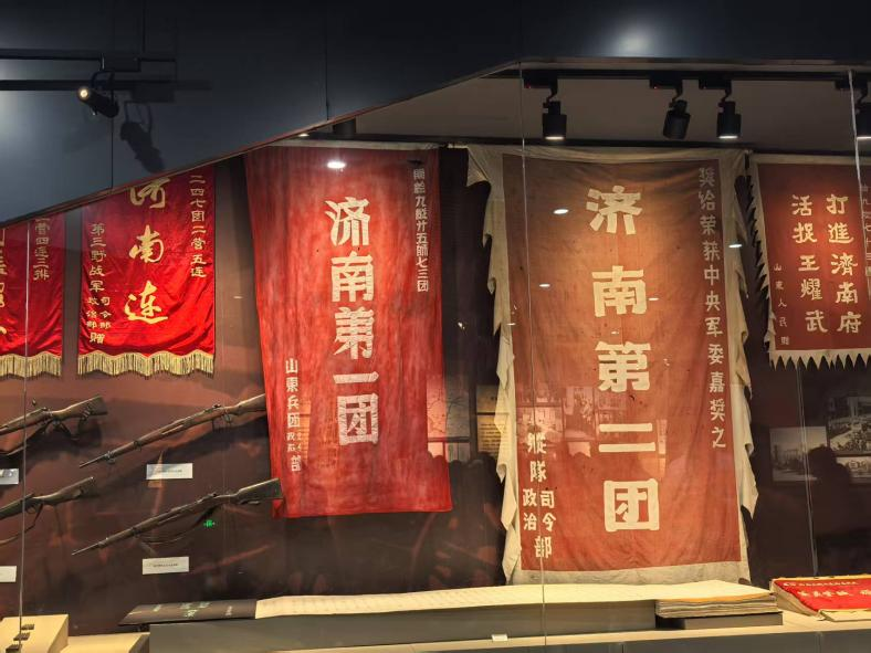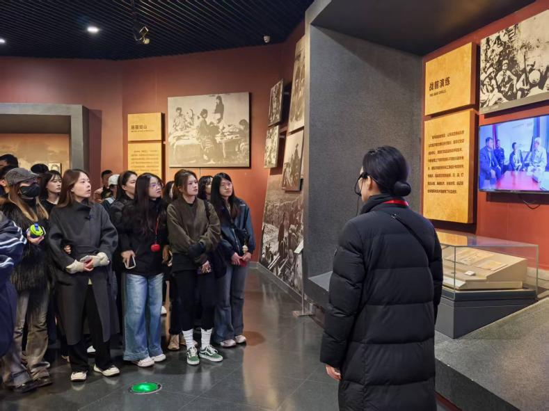 在進館參觀之前,黨員代表王思雨、劉志鵬同志帶領全體學生黨員莊嚴宣誓,重溫入黨誓詞,不忘先烈遺志,銘記歷史,時刻謹記黨員使命。在紀念館內,同學們跟隨講解員的生動講述,通過珍貴的歷史照片、實物展陳和沉浸式場景,深入了解了濟南戰役的光輝歷程。1948年華東野戰軍浴血奮戰“攻克濟南”的壯烈畫面仿佛就在眼前,展現了人民軍隊不畏犧牲、團結攻堅的強大精神力量。同學們駐足凝視戰場復原模型和英雄事跡展板,深刻體會到“愛黨愛軍依靠人民英勇頑強敢于勝利”的濟南戰役精神內涵。