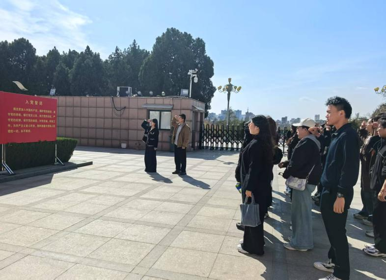 隨后,同學們前往英雄山革命烈士紀念塔,在莊嚴肅穆的紀念碑前集體默哀并敬獻鮮花,表達對革命先烈的崇高敬意。此次主題黨日活動以實地研學強化理想信念教育,激勵青年黨員以革命精神為指引,在藝術與設計的實踐中勇擔使命,讓紅色薪火代代相傳。