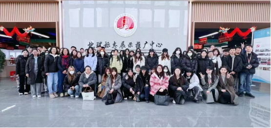 在中國地理標志大廈工作人員的引導下,師生們參觀了全國地理標志產品主題展廳。展廳系統展示了茶葉、手工藝品、農產品等地理標志產品的制作工藝及地域特色。工作人員結合山東本地地理標志產品(如平陰玫瑰、槐蔭四寶等)案例,詳細解讀了地理標志認證對鄉村振興、文化傳承及品牌塑造的推動作用。