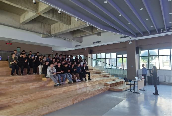 張東緬從公司介紹、培養機制、福利待遇、中心介紹方面對比亞迪全球設計中心進行了相關講解,并邀請同學們到中心進行實習實踐,鼓勵同學們積極投遞簡歷。潘子林針對比亞迪海洋系列熱門車型的設計思路、設計流程、設計語言進行了細致說明與講解,并介紹了中心團隊建設情況。隨后,中心人員與學生們展開了溝通交流,現場氣氛熱烈。