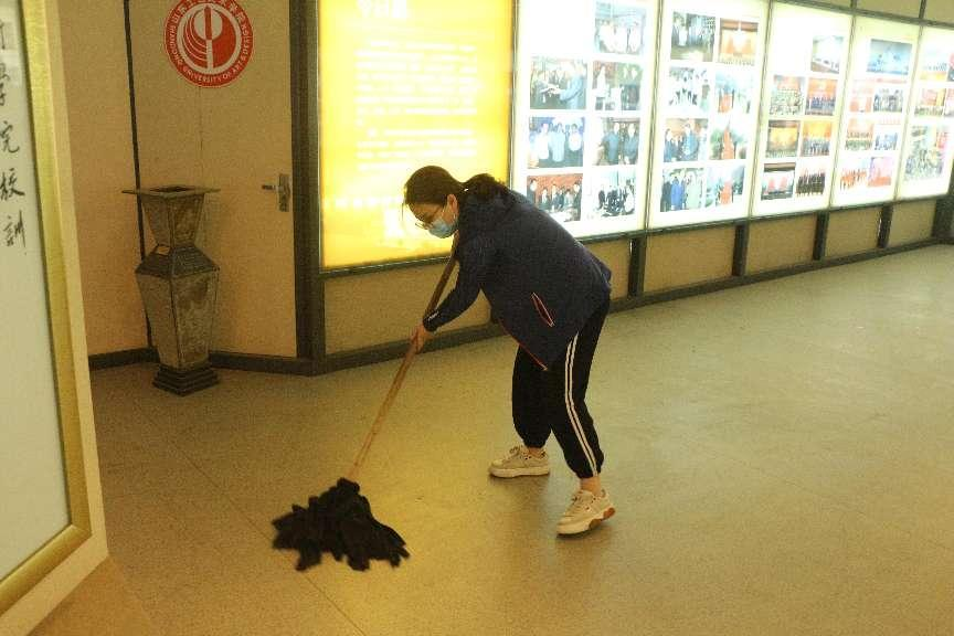 茅檐長掃凈無苔,花木成畦手自栽。5月1日下午,在第72個國際勞動日當天,工業設計學院學生黨支部開展黨員義務勞動,組織學生黨員代表前往校史館進行大掃除。學院黨總支書記王玉杰,學生一支部書記李訓一,輔導員李鑫共同參加了此次勞動。