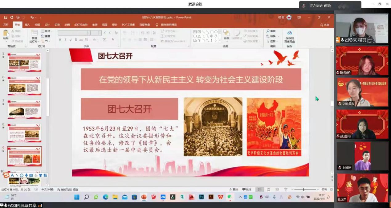 在此次團(tuán)課中,團(tuán)總支成員李冉、王鈺、何鑫鑫、程羽和王旭東,圍繞十九屆六中全會(huì)精神、中國(guó)共產(chǎn)主義青年團(tuán)的歷史、共青團(tuán)的基本概況和共青團(tuán)員的權(quán)利與義務(wù)開(kāi)展宣講,引導(dǎo)廣大青年團(tuán)員深入領(lǐng)會(huì)中國(guó)共產(chǎn)黨百年奮斗的初心使命和重大成就,樹(shù)立正確的理想信念和價(jià)值取向,感悟中國(guó)共產(chǎn)黨對(duì)青年學(xué)生寄予的厚望和時(shí)代賦予的光榮使命。