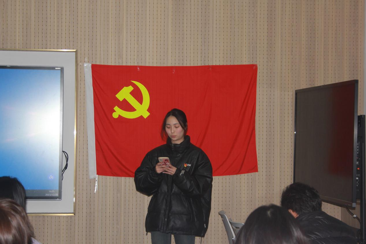 劉怡宏指出,12月是值得銘記的月份。12月13日是南京大屠殺死難者國家公祭日,它記載著一個民族最深重的苦難,標注人類文明史上最黑暗的一頁。12月24日是長津湖戰役勝利的紀念日,它承載著中國人對中國革命歷史的銘記和傳承,承載著對英雄烈士的尊重和懷念。這來之不易的和平背后,有無數英烈曾替我們負重前行,那些為了祖國和人民的平安奉獻一生的人,我們永遠不會忘,也永遠不能忘、更不敢忘。隨后,劉怡宏組織全體學生黨員分享革命先烈的英雄事跡,通過學習英雄人物救國救民的偉大胸懷、赤膽忠心的優秀品質、英勇無畏的紅色革命精神,來引導學生黨員將自己的理想信念與祖國的前途、民族的命運、人民的期待緊密聯系在一起,厚植愛國情懷,為黨建功立業。