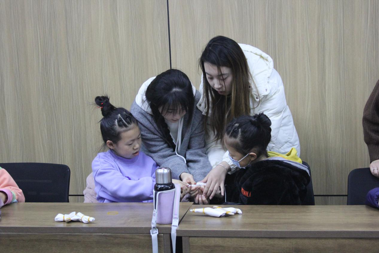 活動(dòng)伊始,服裝學(xué)院志愿者們仔細(xì)講解了扎染的發(fā)展歷史、基本扎染技法、步驟以及扎染所需的各類制作材料并進(jìn)行了扎染演示,參加活動(dòng)的小朋友們興趣濃厚,聽得津津有味。活動(dòng)中,志愿者們耐心地指導(dǎo)小朋友們扎結(jié)手法、染色技巧。等待結(jié)果的過程是期待又興奮的,當(dāng)小朋友們圍在一起解開扎染的繩子后,臉上露出的真摯笑容,就是我們此行最大的目的。
