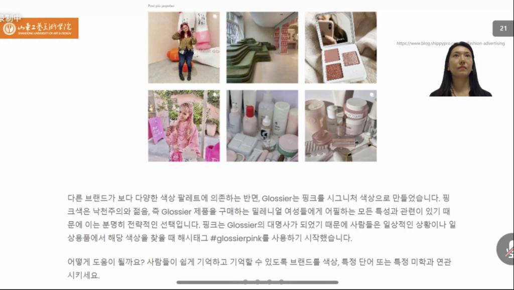 樸昭泫教授根據(jù)本課程的教學(xué)目標(biāo)與課程特點(diǎn),將講座主題定為“后疫情時(shí)代的時(shí)尚廣告”。在這一主題下,講述了現(xiàn)代時(shí)尚廣告的新概念,結(jié)合多個(gè)品牌案例全面闡釋了時(shí)尚廣告的創(chuàng)意性、獨(dú)特性等。教授采用多元化的講授方法,案例生動(dòng)有趣,立足國(guó)際視野,內(nèi)容涵蓋范圍廣泛,讓同學(xué)們學(xué)會(huì)以國(guó)際視野體會(huì)不同的思維方式,打開(kāi)了同學(xué)們的學(xué)習(xí)思路,深刻感受到了多元文化的力量。