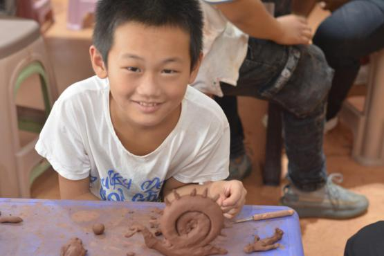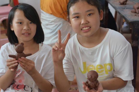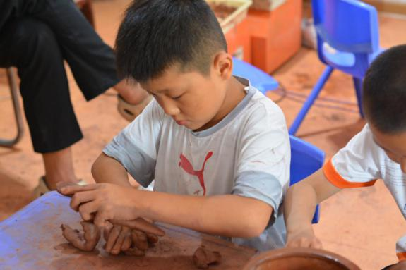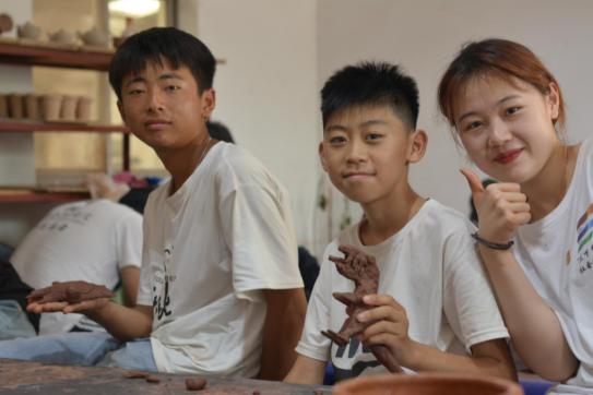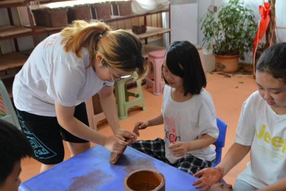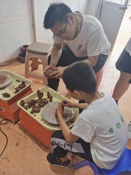 在接下來的時(shí)間里,團(tuán)隊(duì)志愿者帶領(lǐng)孩子來到工作坊,讓孩子們親手體驗(yàn)儒陶的制作工藝,公司負(fù)責(zé)人呂輝華為孩子們準(zhǔn)備了制作儒陶的材料和工具。期間,孩子們也是對(duì)此次的體驗(yàn)充滿興趣,告訴我們“自己從來沒有這樣去玩過泥巴,沒想到泥巴還能做出這樣有趣的作品”,歡聲笑語中我們協(xié)助每個(gè)孩子完成了屬于自己的陶藝作品。活動(dòng)結(jié)束后,我們將聯(lián)合微公益協(xié)會(huì)以線上的形式為孩子們的作品進(jìn)行公益義賣,義賣所得均作為愛心善款捐贈(zèng)給微公益的孩子們。