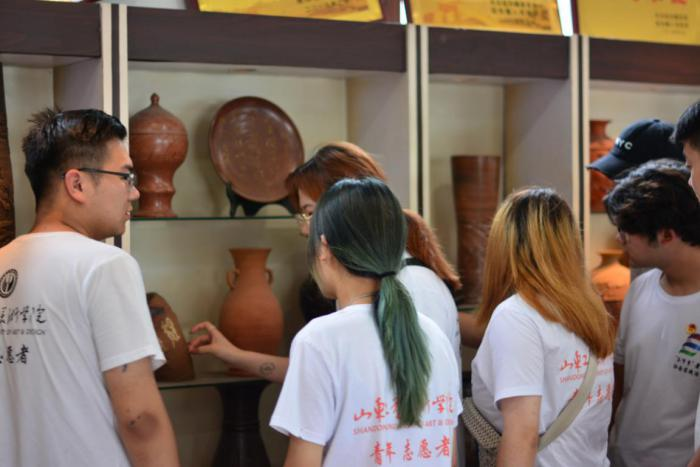 在山東儒陶工藝制品有限公司和微公益的積極配合下活動(dòng)順利開展,首先,團(tuán)隊(duì)志愿者帶領(lǐng)50名兒童參觀學(xué)習(xí)儒陶文化的產(chǎn)生和發(fā)展以及制陶工藝的流程,志愿者憑借自身的專業(yè)學(xué)識(shí)為孩子們講解著一件件作品,帶他們走進(jìn)了帶有千年古韻的藝術(shù)殿堂。