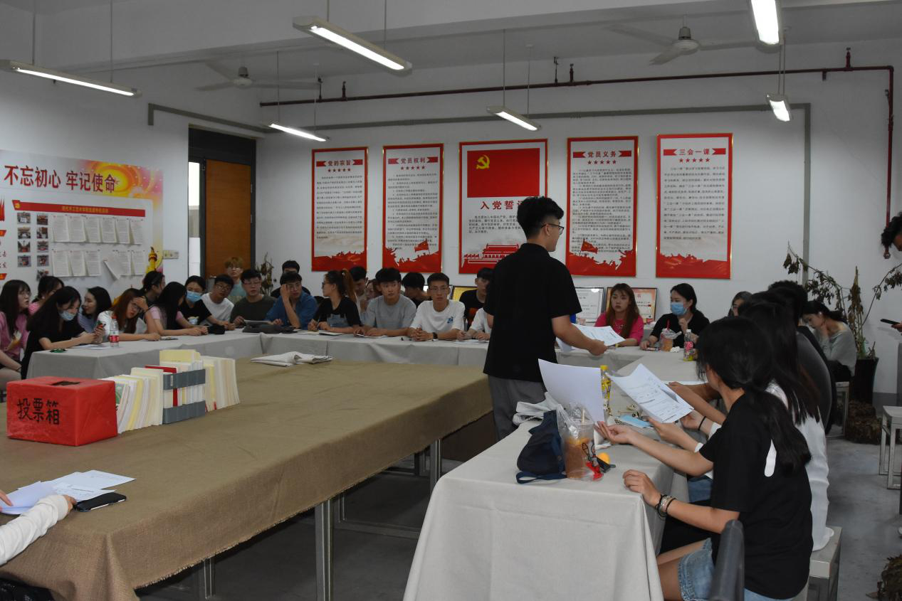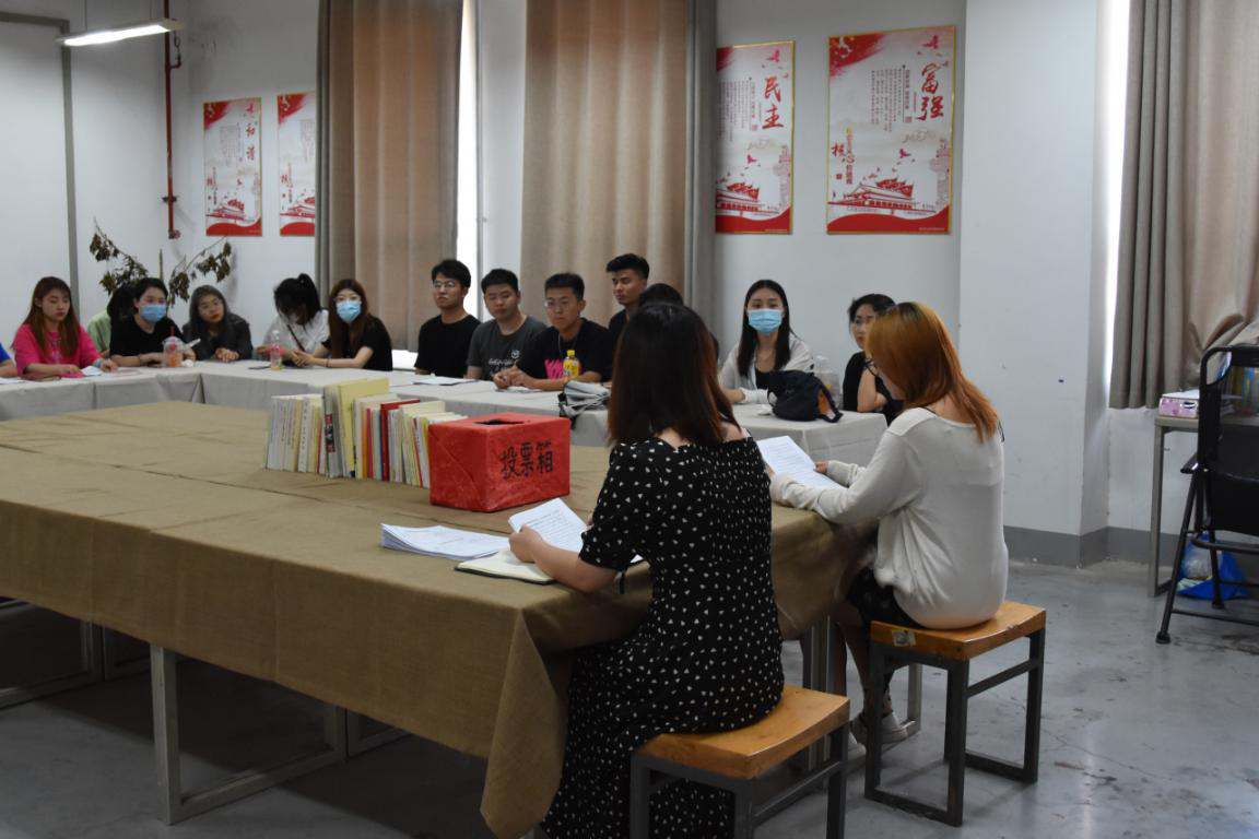 在建黨百年來臨之際,為了進一步加強基層黨組織建設,吸納更多優秀青年加入黨組織,壯大黨員隊伍,現代手工藝術學院學生黨支部于2021年6月18日在教學樓415黨員活動室召開黨員大會,討論接收王冠、張凱、武靖淋、譚凜、郭家興、張長興、馮亞崗、張茹、陳明遠、李文龍、劉宇川、樂煒12位同志為中共預備黨員。會議由現代手工藝術學院學生黨支部書記田媛主持,入黨介紹人、發展對象和全體學生黨員參會。