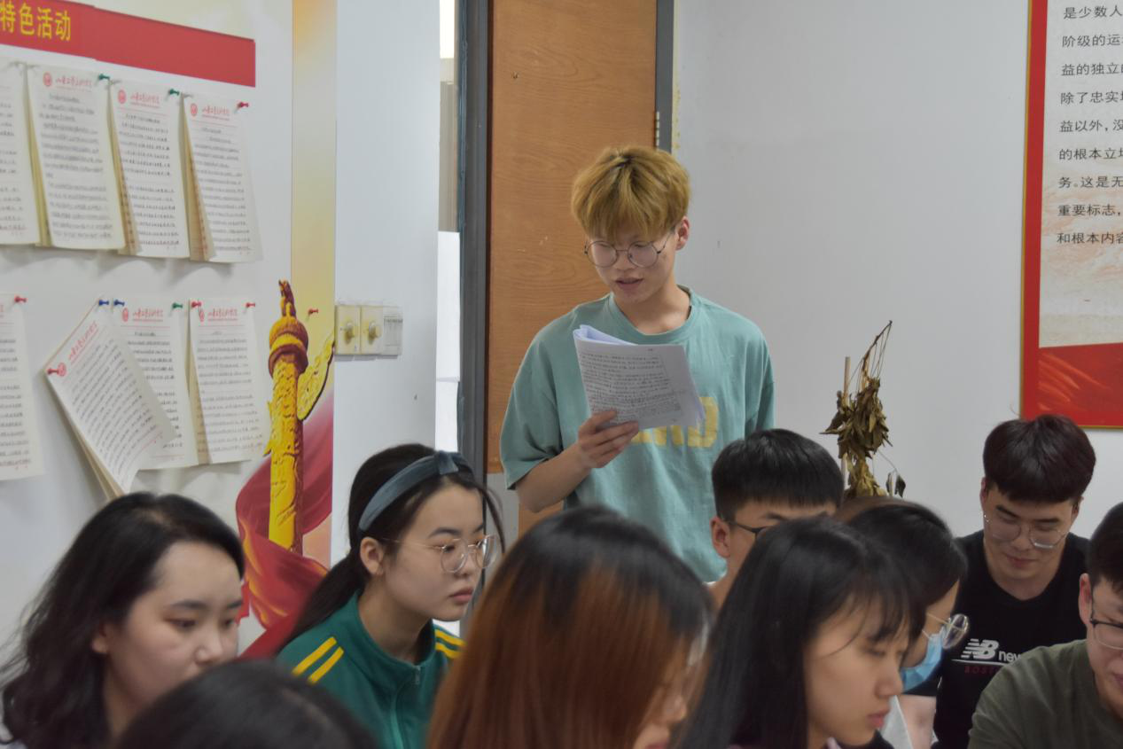 第三項:學生黨支部宣傳委員馮璟同志代表支部委員會向黨員大會報告對12位發展對象的政治審查、征求黨員和群眾意見等情況。