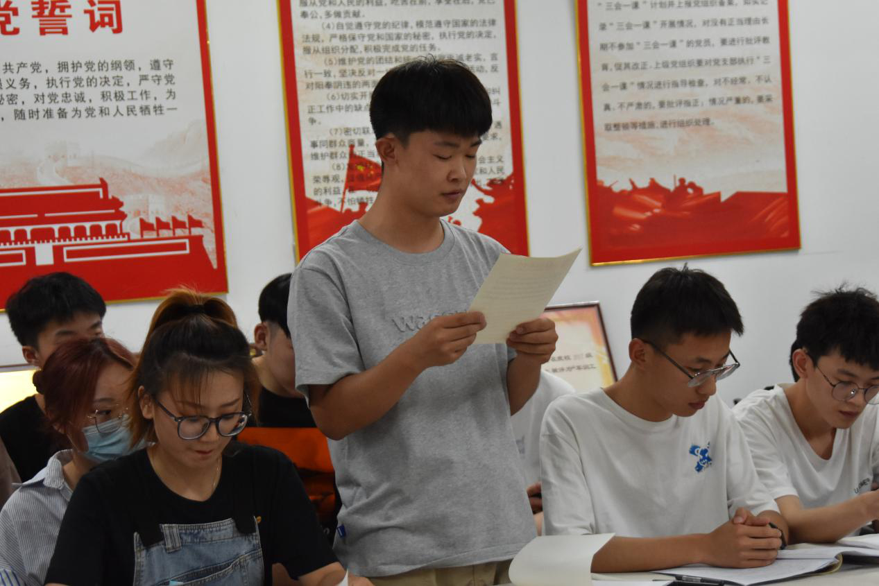 第二項:入黨介紹人田媛同志和李遵同志介紹了發展對象的培養考察情況,并對其能否入黨表明態度。兩位入黨介紹人均認為王冠等12位黨員發展對象一直以實際行動積極向黨組織靠攏,思想高度自覺,學習成績優異,工作認真負責,同意介紹王冠等12位發展對象為中共預備黨員。