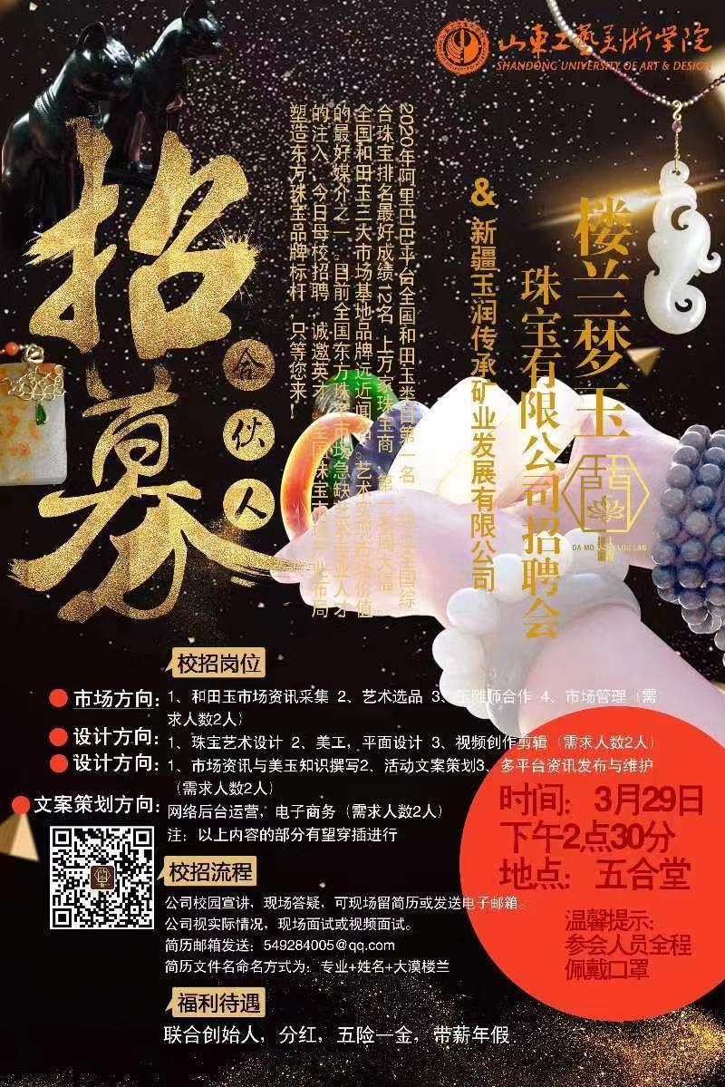 為精準服務2021屆畢業生,滿足學生的就業需求,在學校團委、學生處的支持下,現代手工藝術學院邀請了“樓蘭夢玉珠寶有限公司”來我院開展就業宣講會。本次宣講會于2021年3月29日14:30在五合堂舉辦,現代手工藝術學院2017級、2018級學生積極參會。