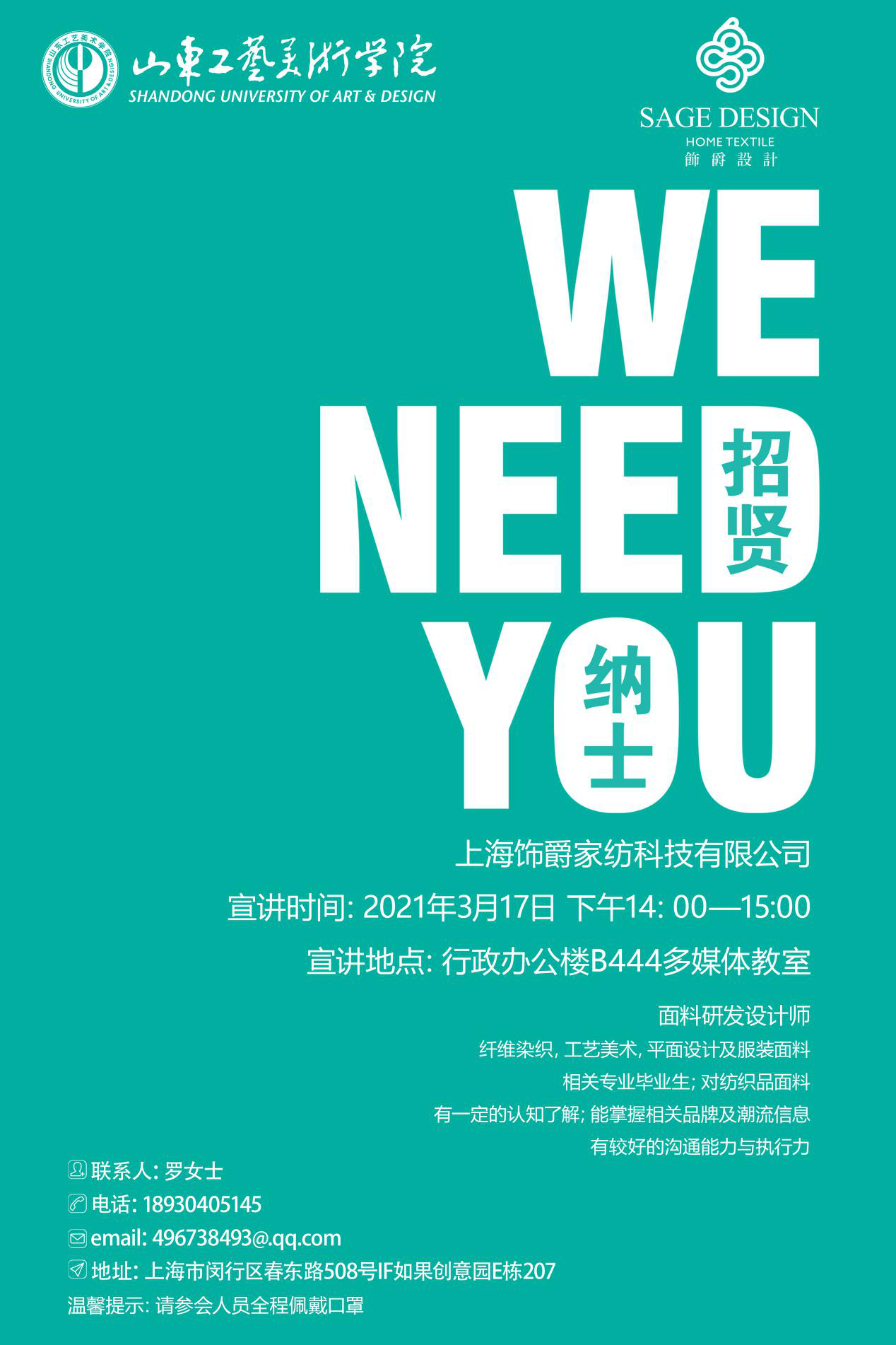 現(xiàn)代手工藝術學院2017級畢業(yè)生本著求真務實,與時俱進的觀念意識,在本次與上海飾爵家紡科技有限公司的宣講會上收獲頗豐。同時,站在人生關鍵的十字路口上,2017級各位同學們勇于直面自身存在的問題,以自我革命與創(chuàng)新突破的意識不斷改造與錘煉自己,不馳于空想、不騖于虛聲,踏踏實實走好從校園到社會這一轉折點的每一步,讓“天工開物·匠心獨運”的校訓在以后的工作生活中繼續(xù)薪火綿延下去。本次現(xiàn)代手工藝術學院與上海飾爵家紡科技有限公司就業(yè)宣講會圓滿結束,未來的種種發(fā)展依舊任重道遠,衷心祝愿現(xiàn)代手工藝術學院2017級畢業(yè)生同學們前程似錦,未來可期。