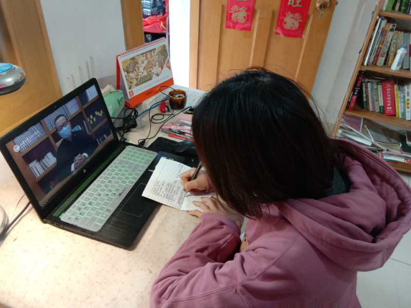 2020新年的鐘聲敲響時,迎來的不是萬家燈火,而是阻擊新冠疫情的戰前準備。喧囂的城市被疫情覆蓋,變得安靜寂然,使得今年的開學方式有些許的特殊,我們用網絡直播的方式開啟了新學期的“開學第一課”,作為一名學生,我們要與奮斗在前線的同胞們并肩作戰,我們的任務就是在這段時間里在家認真聽課,努力學習。毛主席曾說過“情況是在不斷的變化,要使自己的思想適應新的情況,就得學習。”停課不停學就是我們對抗擊這次疫情最大的支持。線上云互動,隔屏不隔愛。我相信,待到春暖花開之時,我們終將回歸校園。