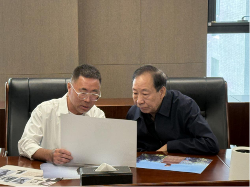 商長虹與顧準先生長子、中國科學院院士顧逸東討論《顧準像》創(chuàng)作構思