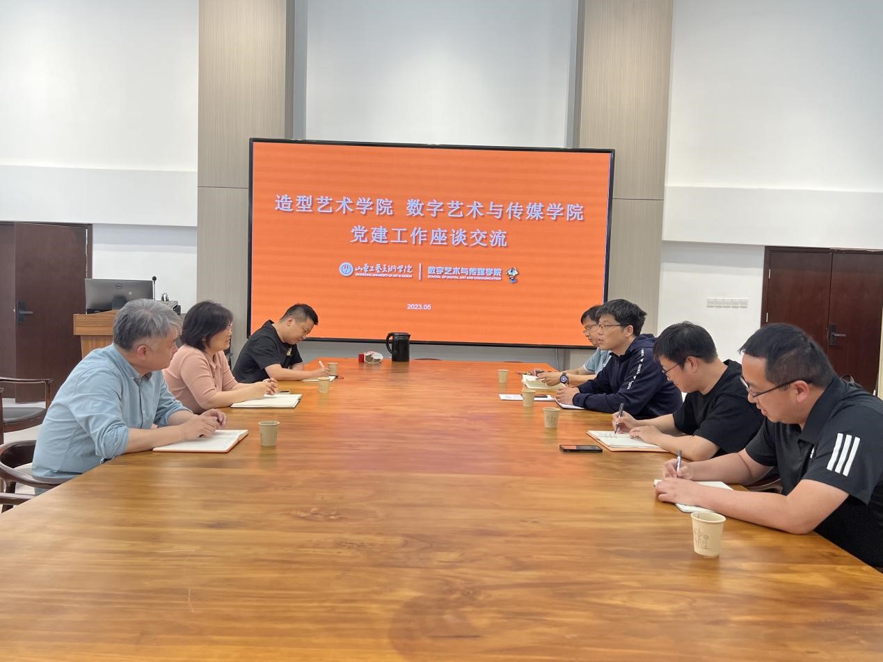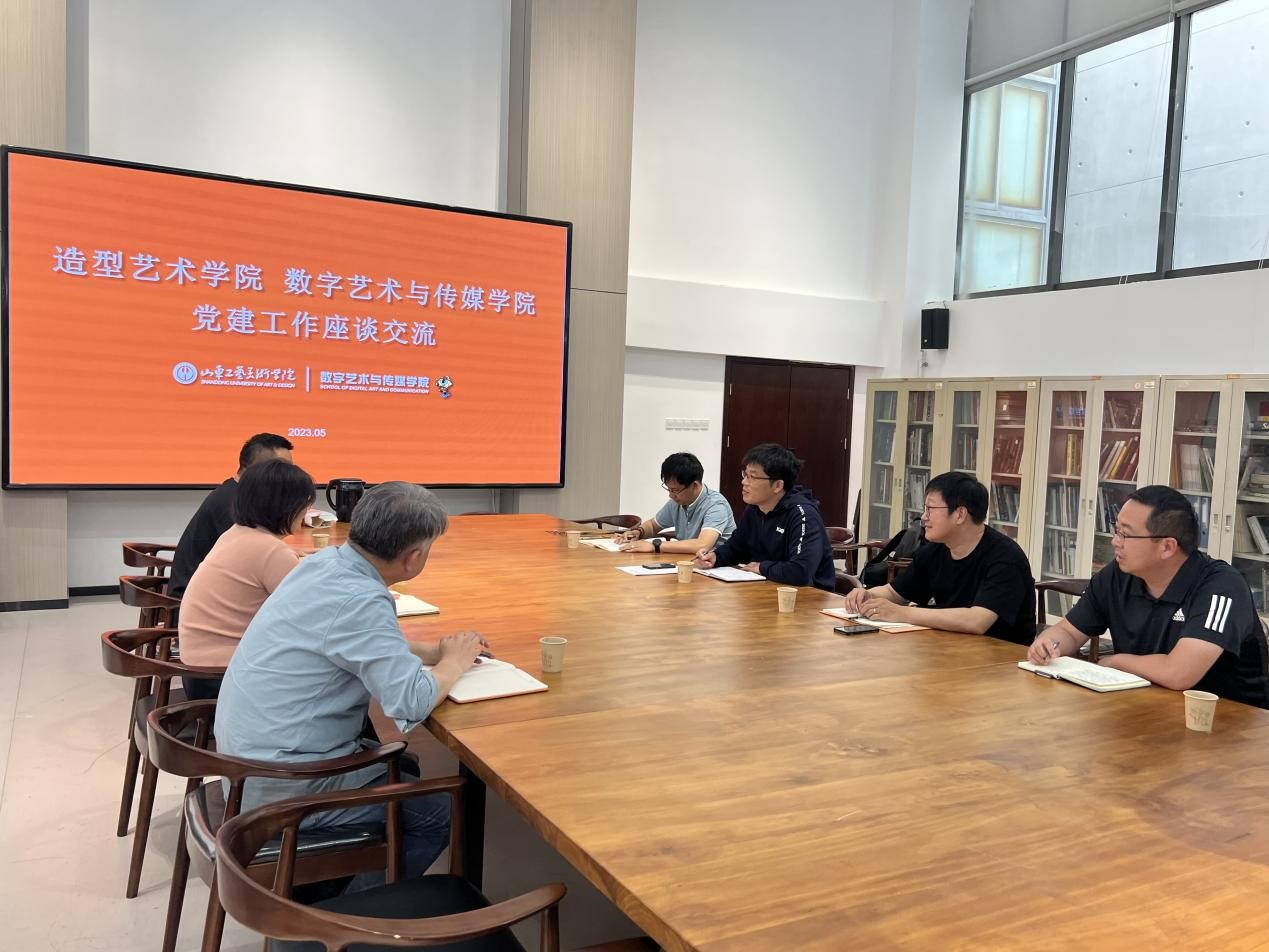 李希進書記介紹了造型藝術學院近年來的發展情況、黨建工作情況以及下一步開展黨建的工作思路。他表示,希望進一步加強與數字藝術與傳媒學院的溝通和聯系,互相汲取工作經驗,實現優勢互補,取長補短,推動黨建工作共同發展。