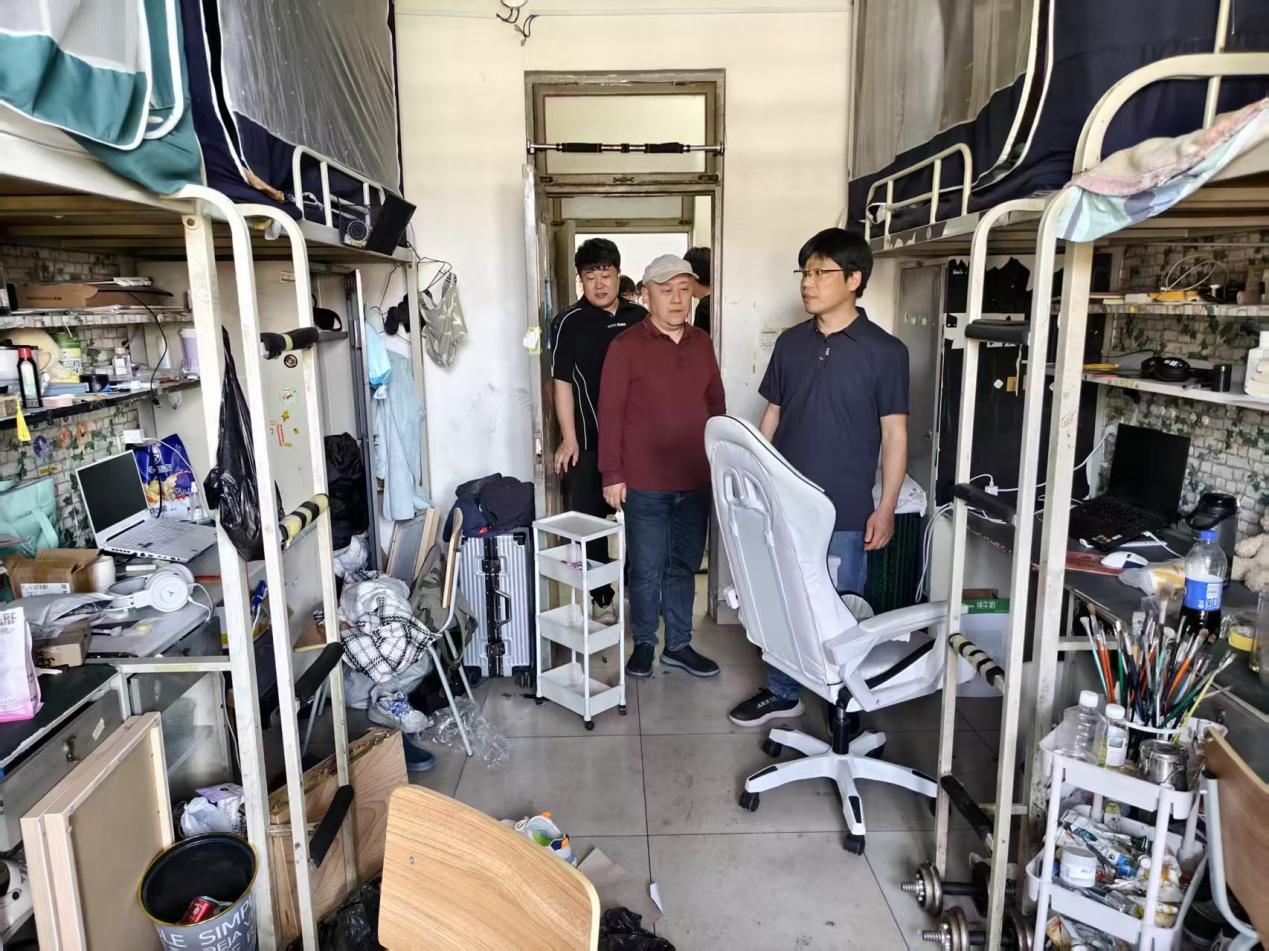 檢查組深入各宿舍、教室、雕塑大棚等地查看物品擺放、臥具整理、違章電器等安全隱患等問題,詳細記錄存在的衛生問題及安全隱患問題,并提出了具體明確的整改要求。檢查過程中,學生們積極配合,對領導和老師們提出的要求認真聽取并及時改進,展現了當代大學生良好的精神風貌。