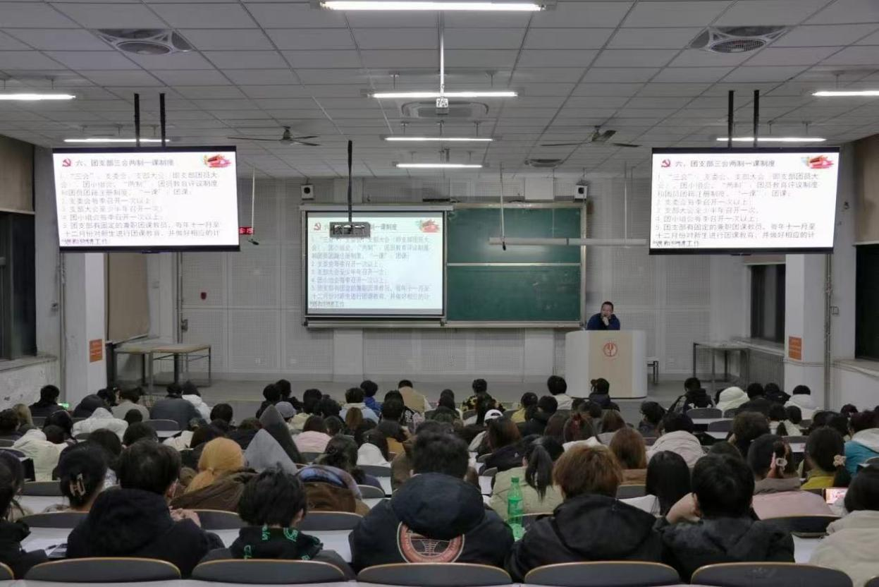 團課開始,許威治介紹本次團課的內容流程,說明團總支工作與團務活動,強調團支部及干部職責,新生借此深入了解共青團。接下來,許威治講解了推優入黨和評獎評優的要求,鼓勵同學們積極融入黨的偉大事業。隨后,就“三下鄉”、第二課堂及學業課程要求展開講解,強調實踐的重要性,激勵學生將知識與實際相結合,促進個人與社會協同發展。此次團課的開展助力了新生了解團總支工作,明確了大學目標任務并激發出了青春熱情。