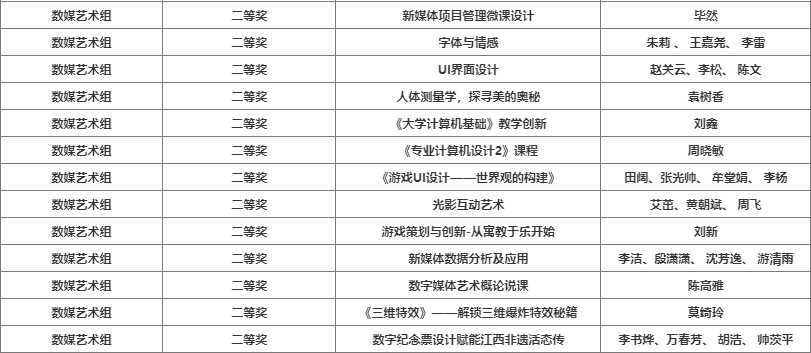 近日,第七屆全國數字創意教學技能大賽國賽公示高校獲獎名單,我院教師在此次比賽中喜獲佳績。數字媒體藝術專業教師田闊、張光帥、牟堂娟、李楊團隊課程《游戲UI設計—世界觀的構建》榮獲國賽二等獎。