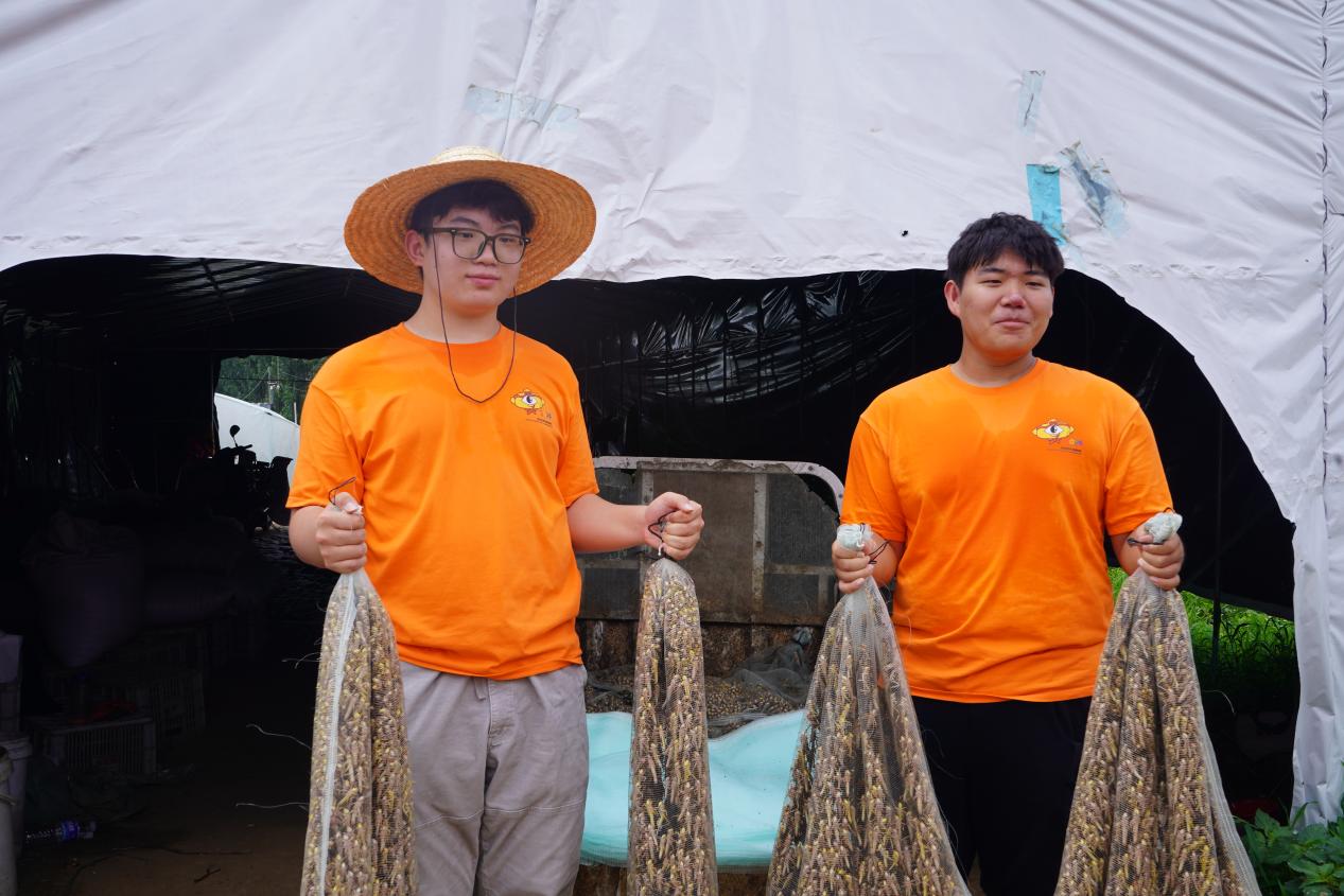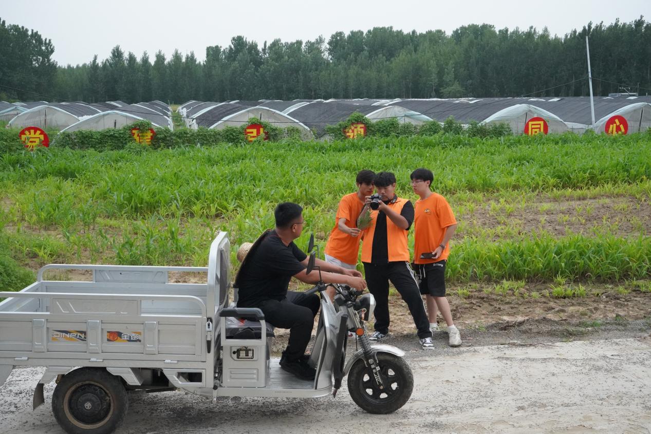 7月14日,團隊師生參觀鳳頭村螞蚱養殖基地,了解鳳頭村螞蚱養殖基地的發展過程和90后村支書秦其斌大學畢業后返鄉創業事跡。秦其斌返鄉后,積極探索新的發展模式,將螞蚱養殖技術成功引進來,采取“黨支部領辦合作社+農戶+企業”模式,共計投資90萬左右,建設了70個螞蚱大棚,一年下來一個棚的產值能達到1萬元以上,經濟效益非常可觀。如今合作社已初具規模,形成“產加銷”一體化發展鏈條,“小螞蚱”搖身一變成了致富的“大蝗金”,實現了集體增收、村民受益、企業發展、鄉村振興的多方共贏。團隊成員聽了秦其斌的事跡后深受感動,以秦其斌返鄉創業,把螞蚱變“蝗金”,帶領村民走上致富路為主線,深入了解螞蚱養殖的發展過程、養殖技術,拍攝專題宣傳片,講述黨建引領、同心共建的實際成效,呼吁年輕人回鄉創業,在服務鄉村、振興鄉村中貢獻青春力量。