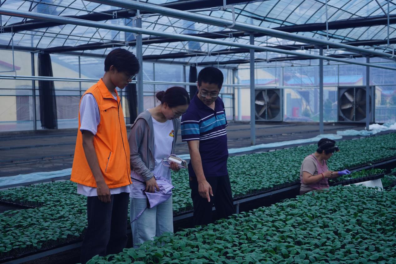 7月17日下午,團隊師生參觀調研了綠島農業黃瓜育苗基地。企業負責人謝瑞坤介紹了黃瓜種苗繁育、產業規模發展情況,并帶領師生參觀了省級現代農業產業園項目支持的新型育苗連棟溫室,同學們現場與農技人員交流,詳細了解辛集黃瓜全產業鏈發展現狀。