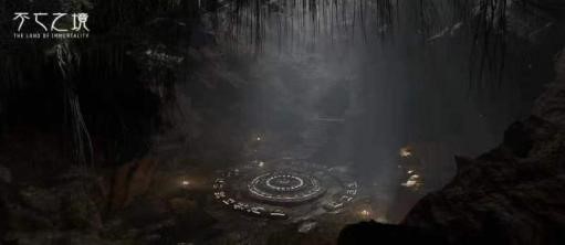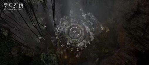 《不亡之境》是以漢代人對尸解、升仙的信仰作為文化背景,以昆侖山(百神所在之地)為環(huán)境設(shè)定的三維場景制作。場景由蘊(yùn)含宇宙方圓觀的漢代銅鏡為主體的祭壇,漢人心中通往神道入口的天門漢闕以及生于西方昆侖的長青樹構(gòu)成,其中祭壇主要參考西漢晚期昭明銅鏡,長青樹又稱長生樹其靈感源自于資料《漢畫像石中樹的象征意義》——作者陶華。制作過程中,將象征宇宙周而復(fù)始沒有窮盡的云水紋飾和昭明銘文通過雕刻的方式和祭壇融為一體,當(dāng)祭壇機(jī)關(guān)觸發(fā)時(shí)產(chǎn)生明滅、轉(zhuǎn)動(dòng)的動(dòng)勢,集運(yùn)行中的天體之意,暗示天地人神終將合一,通向神祇的天門石闕打開。最后希望通過這個(gè)場景能向大家展示出漢代民眾對升仙強(qiáng)烈的向往和追求以及他們對死亡和永恒生命的深刻思考及實(shí)踐。