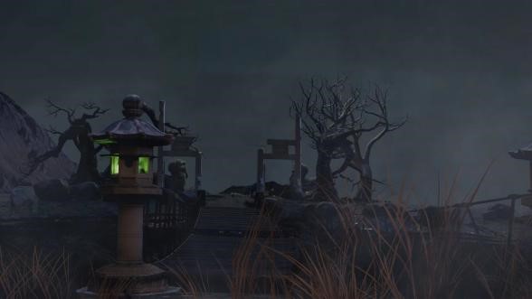 《京郊古剎》場景的主題為因東漢末年戰(zhàn)亂而被摧毀的破敗白馬寺。我們的靈感來源參考了插畫《妖面行》中的氣氛和殘破的視覺效果也參考了電影及游戲《倩女幽魂》中的蘭若寺整體布局和寺廟光影、以及蘭若寺妖異恐怖的氣氛。我們給作品賦予的創(chuàng)作背景是:東漢末年黃巾軍起義,對白馬寺拆廟破像進(jìn)行了屠殺和焚燒。白馬寺在之后戰(zhàn)亂中被廢棄變得殘破荒廢,同時(shí)白馬寺遭遇的大屠殺讓原本莊重祥和的寺廟沾染了許多血腥和人命,變成了荒涼的“鬼寺”。再累不荒廟,再餓不吃墳供。深山中無人問津的破廟居然亮起了奇異的燈光吸引人前往。門前造型奇特像厲鬼爪子般的枯樹、迷蒙濃厚的霧氣、曖昧的燈光和殘破的搖搖欲墜的吊橋,似乎都訴說著這座破廟的不尋常。白馬寺是佛教傳入中國后興建的第一座官辦寺廟。自東漢至文革時(shí)期,幾經(jīng)焚燒破壞歷經(jīng)興衰卻依舊風(fēng)骨猶存。希望通過我們的作品,能夠引起大家對中國佛教歷史起源的興趣。