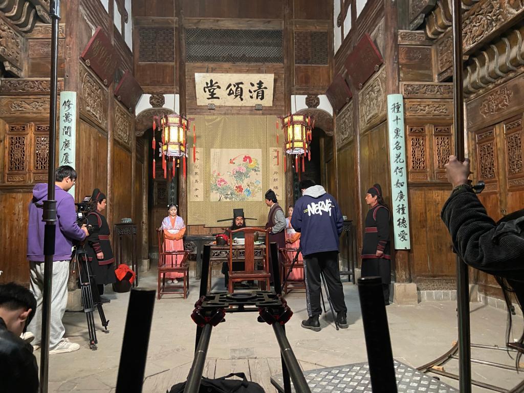 自傳統文化數字影像校企共建實驗室成立以來,數字學院與蟠龍梆子影業在戲曲電影、紀錄片、專題片、科教片聯合攝制方面進行深度合作,以項目教學的形式推進傳統文化數字影像的多元化發展。在項目推進過程中,我院師生充分發揮專業優勢和創新精神,與蟠龍梆子影業團隊緊密合作,共同完成了從劇本創作、拍攝制作到后期剪輯的各個環節,學生們在劇組中分別擔任攝影、燈光、場記、化妝等職務,他們憑借良好的專業能力協助劇組在最短時間完成高質量的影片拍攝工作,不僅提升了實踐能力和創新思維,也深刻感受到了傳統文化的魅力和現代科技的力量。