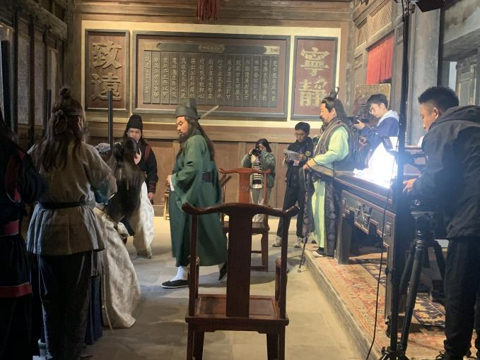 繼鋼城區(qū)委宣傳部、蟠龍梆子影業(yè)赴歡迎來到公海7108線路考察交流,洽談合作之后,為進(jìn)一步落實中國傳統(tǒng)文化地方戲曲影像傳播和鄉(xiāng)村文化振興探索可行性專業(yè)合作模式,3月21日,數(shù)字藝術(shù)與傳媒學(xué)院與蟠龍梆子影業(yè)首次開展實踐教學(xué)合作。數(shù)字藝術(shù)與傳媒學(xué)院與山東魯戲傳媒、蟠龍梆子劇團(tuán)聯(lián)合籌拍蟠龍梆子戲曲電影《李逵斷案》,影片于3月21日至3月24日在菏澤市鄆城縣好漢城完成相關(guān)的拍攝工作,預(yù)計2023年底完成攝制工作,將于2024年上映。學(xué)生們在劇組中分別擔(dān)任攝影、燈光、場記、化妝等職務(wù)。