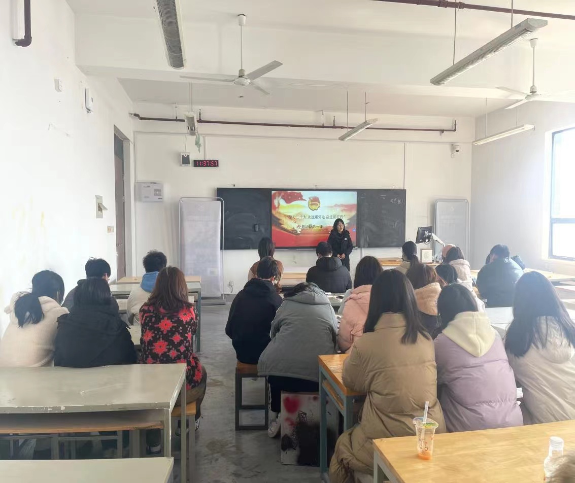 為持續鞏固深化黨的二十大精神,我院團總支副書記鞏珂帶領團總支各委員深入學習貫徹黨的二十大,全面把握黨的十八大以來的歷史性成就與變革,并對此次主題團隊第一課的工作安排進行了介紹。鞏珂老師提出各團支部要依托”三會兩制一課”制度機制、“青年大學習”主題團課等載體開展組織化學習,不斷加強廣大團員的思想政治教育,練就過硬本領,奮發有為,答好青春之卷。