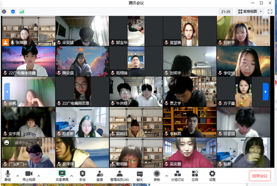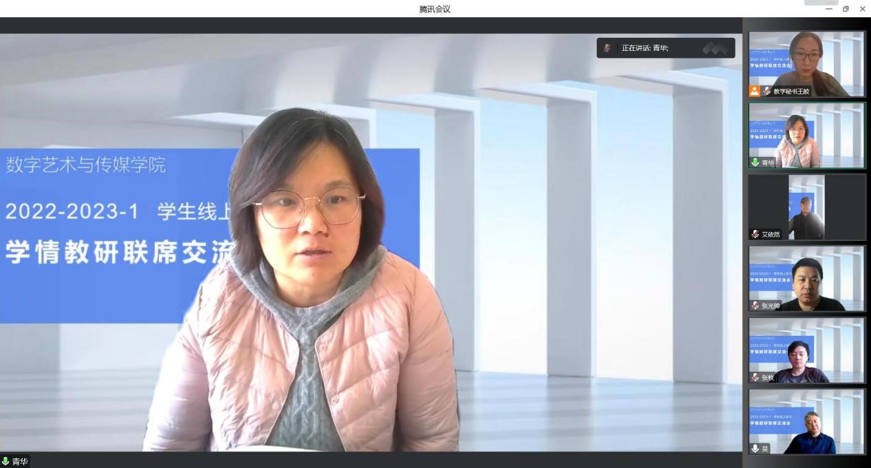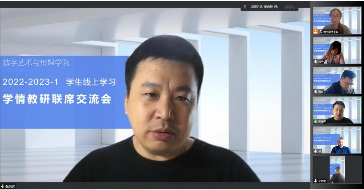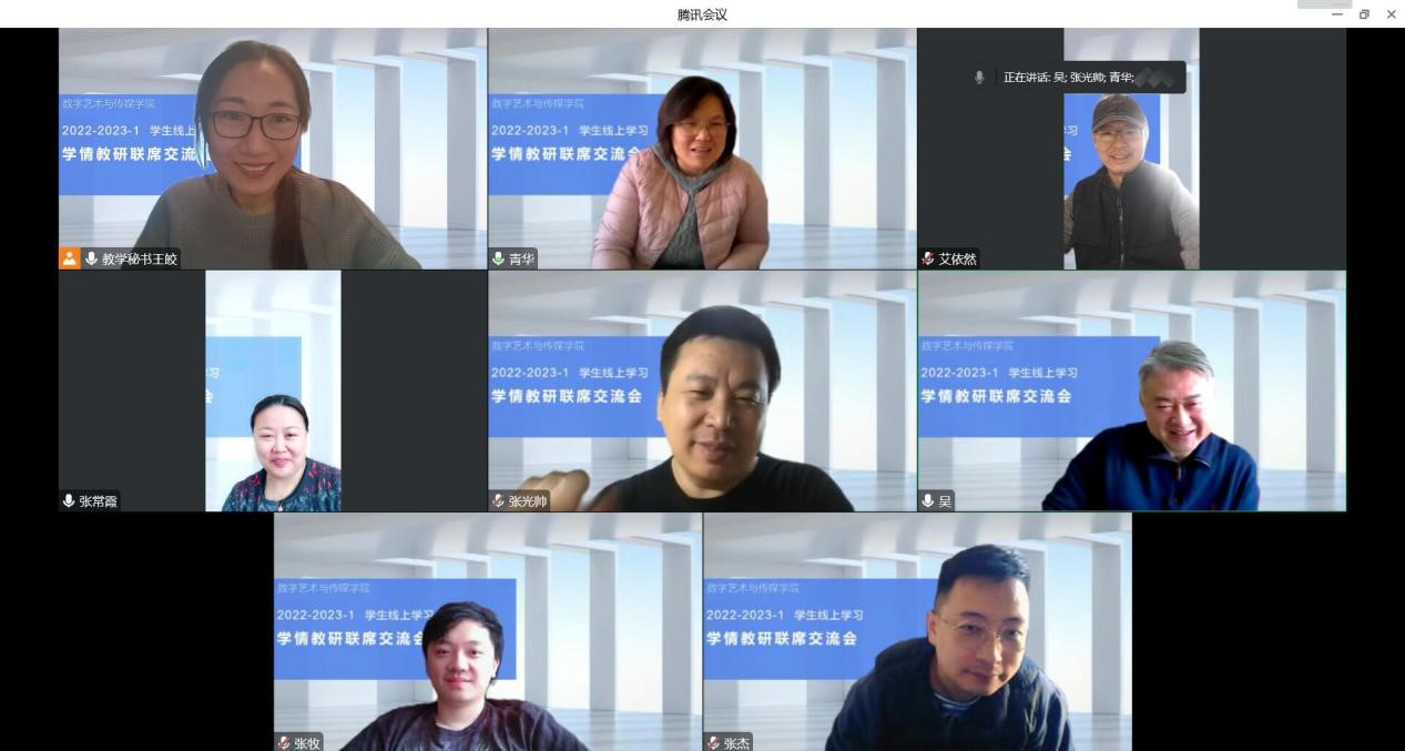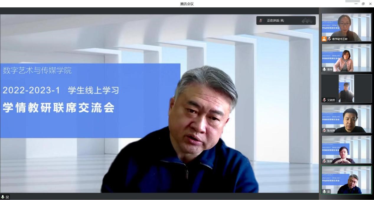 12月18日,數字藝術與傳媒學院院長吳向陽、黨總支書記李清華、副院長張光帥、教學秘書王皎及各教研室主任在騰訊會議舉辦線上“學情教研聯系交流會”。