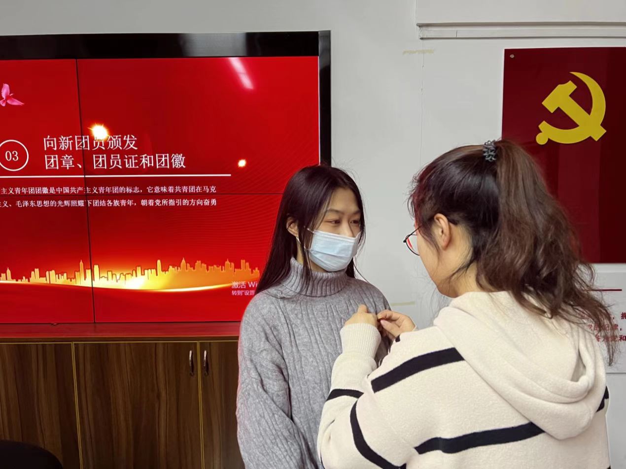 為進一步壯大團員隊伍,凝聚青年力量,充分展現青年團員的青春擔當,增強青年榮譽感和自豪感,11月19日下午,數字藝術與傳媒學院團總支于辦公樓B446舉行了新團員入團宣誓儀式,團總支副書記鞏珂和新發展的團員們一起參加本次活動。