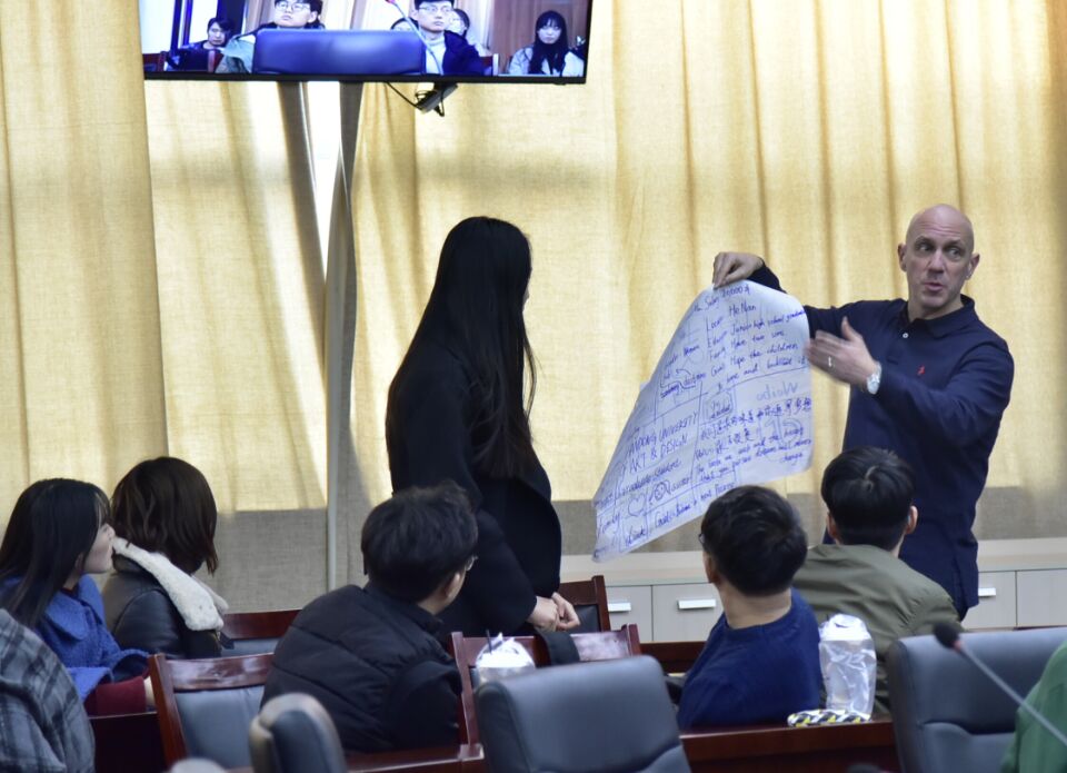 在熱烈的討論中,學(xué)生們逐漸打開(kāi)思路,Damien 老師在與學(xué)生的互動(dòng)中,不知不覺(jué)已將知識(shí)點(diǎn)滲透到學(xué)生心里。此次“工作坊”體驗(yàn),不但學(xué)生們開(kāi)拓了視野,了解到英國(guó)大學(xué)的教學(xué)方式,也為學(xué)校的課程改革提供了思路。