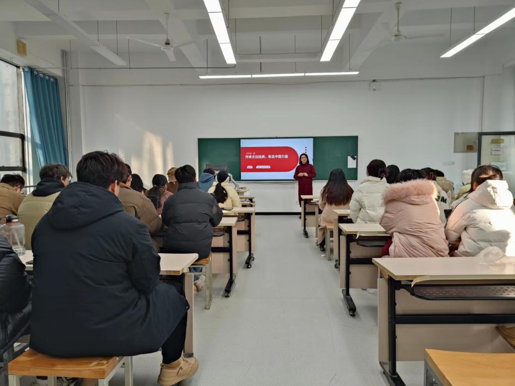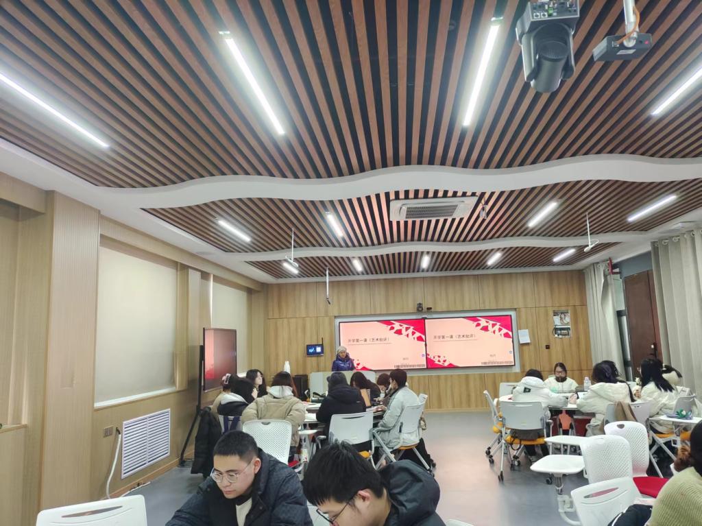 人文藝術學院韓源泉老師的開學第一課《傳承文化經典,彰顯中國力量》,梳理了作為中國傳統文化載體的“年”的內涵轉變和過年形式變遷。通過有理有據的分析,讓學生了解隨著時代發展,傳統觀念在傳承的同時也發生著轉變,鼓勵學生珍惜當下,為國家社會的更進一步發展做出自己的貢獻。徐小寧老師的《設計組織管理》課程,以中央廣播電視總臺《2024年春節聯歡晚會》中來自西安分會場的節目《山河詩長安》為例,分析了該節目如何采用增強現實技術,讓李白跨越時空、乘鶴而來、飲酒對詩、觀今日西安,讓大唐不夜城再現盛世長安恢宏景象。以此鼓勵文化產業管理的學生加強對中華優秀傳統文化的挖掘和闡發,讓中華文化展現出永久魅力和時代風采,為建設中華民族現代文明作出貢獻。此外,張愛紅、許俊、姚丹等多位老師都從各自課程特點出發,結合思政內容,引導學生在新學年確立新目標、學習新知識。